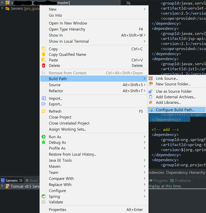 ① 프로젝트에서 오른쪽 마우스 버튼 - Build Path - Configure Build Path..