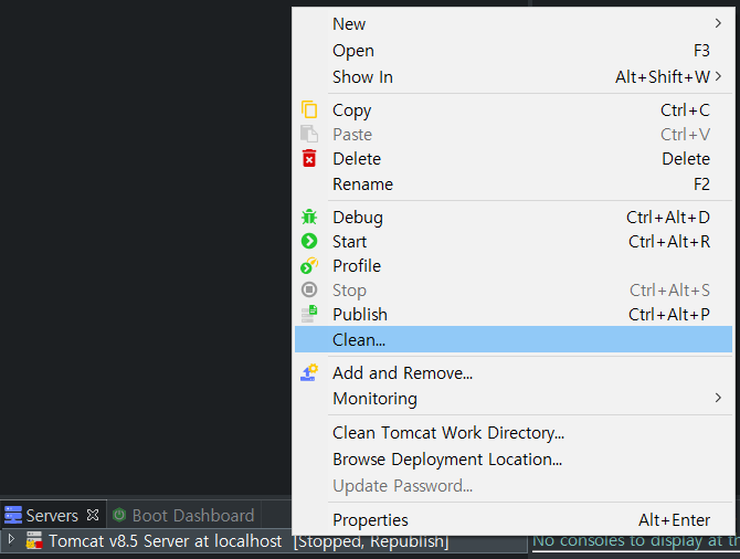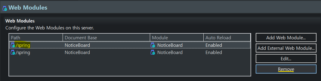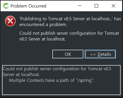 서버를 구동시킬 때 아래의 창이 뜨고 서버가 구동되지 않음